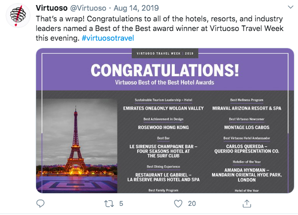 The event hashtag, #VirtuosoTravel, trended nationally on Twitter.